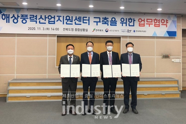 새만금개발청(청장 양충모)은 11월 3일 한국에너지공단, 지자체 등과 해상풍력산업지원센터의 새만금 재생에너지 클러스터 입주를 약속하는 업무협약을 체결했다고 밝혔다.