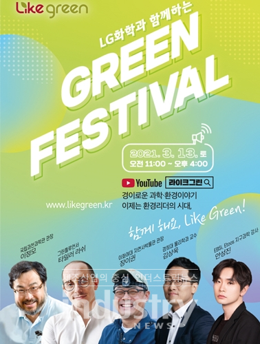 [인더스트리뉴스 정한교 기자] LG화학이 ESG 경영의 일환으로, 환경문제를 고민하고 에너지 및 기후변화 대응의 중요성을 전달하는 토크 콘서트를 연다. LG화학은 기아대책 등과 함께 오는 3월 13일 오전 11시부터 오후 4시까지 온라인으로 5명의 스타 강사들이 릴레이 강연을 벌이는 ‘그린 페스티벌’을 개최한다고 9일 밝혔다.