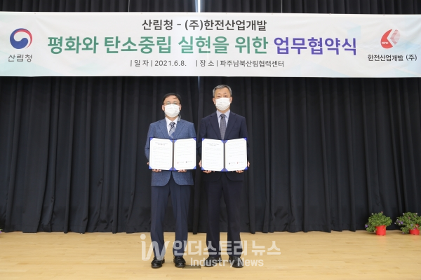 [인더스트리뉴스 최종윤 기자] 한전산업개발(대표 김평환, 이하 한산)과 산림청 산하 남북산림협력단(단장 이용권, 이하 산림협력단)과 함께 탄소중립과 남북평화 정착을 위한 평화의 숲 조성 사업에 적극적으로 나서기로 했다.