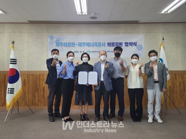 [인더스트리뉴스 권선형 기자] 제주에너지공사(사장 황우현)는 제주의료원(원장 오경생)과 지난 6월 8일 공사 회의실에서 ‘양질의 의료 서비스 제공을 위한 업무협약’을 체결했다고 밝혔다.
