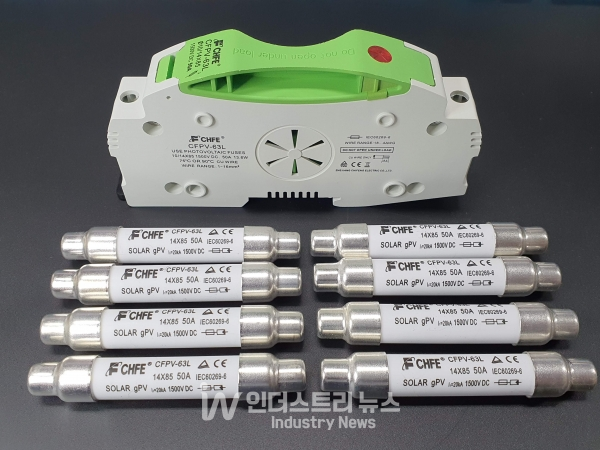 당사는 퓨즈 홀더 변경 없이 50A까지 퓨즈만 교체해 사용 가능한 신제품을 출시했다. 최근 태양광 패널 출력이 올라가며 퓨즈 또한 KS기준에 맞추기 위해 기존의 15A, 20A를 넘어 25A, 30A로 용량이 올라가고 있는 추세다. 추후에는 30A 이상도 올라갈 것으로 예상되고 있다.