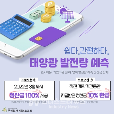한편, 대건소프트는 ‘To Go 서비스(무료 체험 서비스)’를 통해 금년도 9월까지 계약한 발전소에 한해 2022년 3월까지 수수료 없이 정산금 100%를 지급하고 있다.