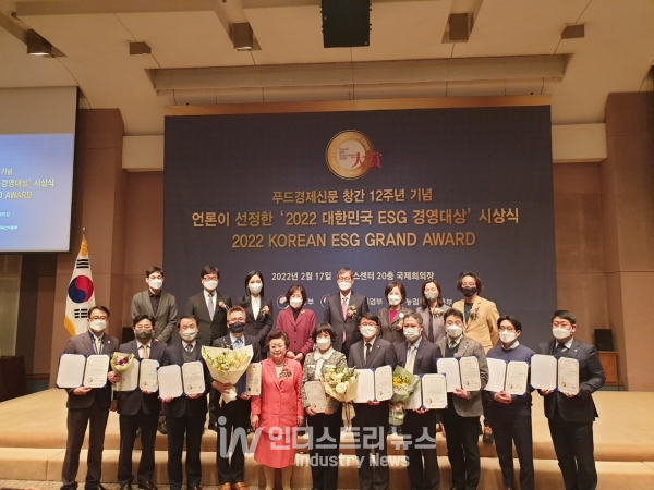 ‘2022 대한민국 ESG 경영대상’은 산업계의 메가 트렌드가 된 ESG(환경·사회·지배구조) 경영을 앞장서 실천하는 기업을 선정, 대한민국이 ESG 글로벌 선도국가로 나아가는데 언론의 몫을 다하고자 마련한 자리다. 이번 시상식은 종합경제지 푸드경제신문이 주최하고 환경부, 중소벤처기업부, 농림축산식품부가 후원했다.
