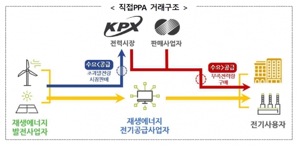 [인더스트리뉴스 권선형 기자] 9월부터 재생에너지를 이용해 생산된 전기를 전기사용자가 직접 구매할 수 있는 ‘직접PPA 제도’가 시행된다. PPA(Power Purchase Agreement 전력구매계약)는 전력시장을 통하지 않고 전력판매자와 전기사용자가 전력을 직거래하는 당사자 간 계약 방식이다.