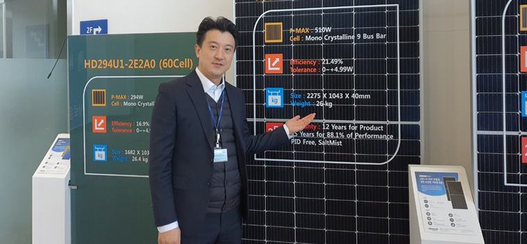 [인더스트리뉴스 권선형 기자] “지난해 국내 태양광 시장에서 가장 눈에 띄는 성과는 안좌도 대형 프로젝트 수주다. 안좌도 204MW 규모 프로젝트에 탄소 1등급 모듈을 납품했다. 일반 태양광 시장에는 300MW(탄소 1, 2등급) 판매를 달성해 그린에너지 확산에 기여했다.”