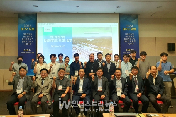 [인더스트리뉴스 조창현 기자] 탄소중립 실천을 위한 건물태양광 포럼이 열렸다. 한국건물태양광협회는 28일 건물태양광 산업 생태계 활성화를 위한 정책과 기술 및 시장동향을 주제로 ‘2023 BIPV 포럼’을 개최했다. 포럼에는 건물태양광 관련 기업 및 연구소 관계자 등이 참석했다.