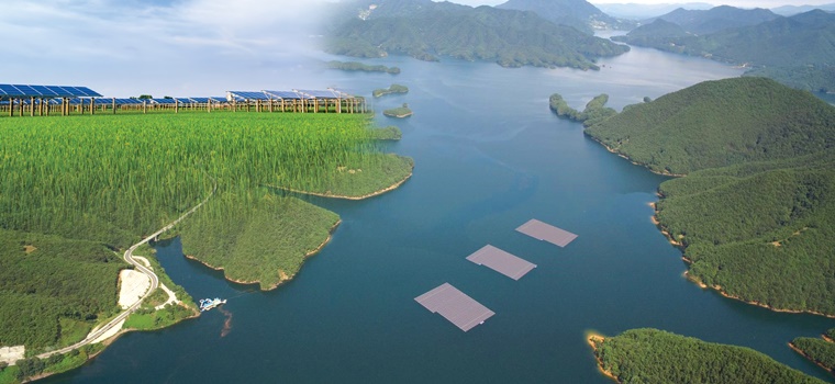 수공은 청풍호 수상태양광의 사업성을 확인했다. 전력 판매로 창출되는 수익을 따지면 환경모니터링, 인건비 등 운영비를 감당할 만하다. 지난해엔 경남 합천댐에 41MW 용량을 준공했다. 연간 5만6388MWh의 전력 공급이 가능한 규모로 합천군민(약 4만3,000명) 모두가 쓸 수 있는 양이다. 발전 수익은 주민들과 공유된다. 합천댐 주변 20여 개 마을 주민 1,400여 명은 마을공동체를 통해 총사업비(767억원) 중 31억원을 투자했다. 경북 임하댐에 착공을 앞둔 시설은 세계 최대인 45MW 용량이다. 향후 전기사업허가 등에 관한 조정 절차가 남아 있다. 임하댐 수상태양광발전소가 들어설 장소는 전국 최초의 ‘신재생에너지 집적화단지’로 지정됐다.