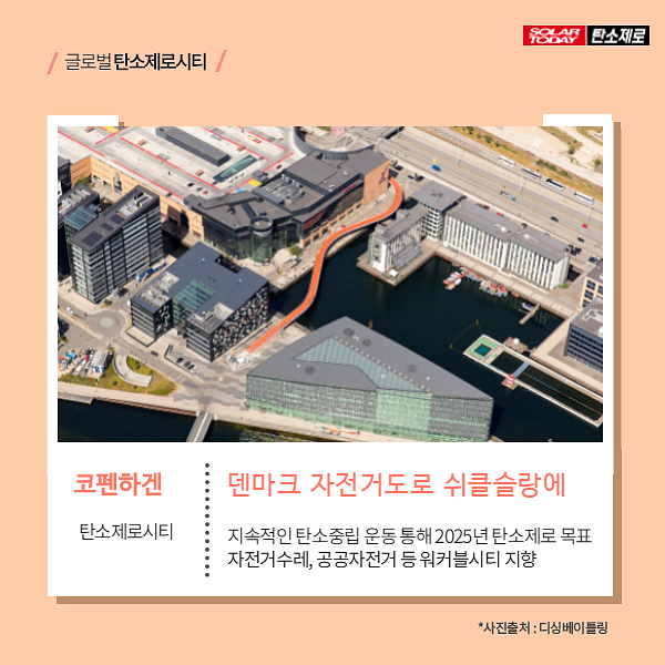 코펜하겐은 덴마트의 수도로 세계에서 가장 앞선 탄소중립 수도의 꿈을 꾸고 있다. 2025년까지 탄소중립을 목표로 하는 ‘코펜하겐 2025 기후계획(CPH 2025 CLIM ate Plan)’을 통과시킬 것으로 보인다. 대표적인 내용으로는 바이오매스, 풍력 등 재생에너지로의 전환, 전력 소비량 축소를 위한 설비 투자, 자전거수레, 공공자전거 활용 및 쉬클슬랑에와 같은 기반 시설 마련, 교육 프로그램 운영 등이 있다.