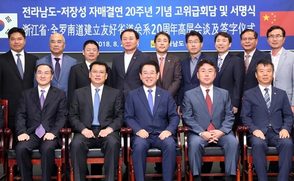 저장성 위안자쥔 성장을 단장으로 한 저장성 대표단은 최근 전남을 방문하고, 전라남도 김영록 도지사와 고위급 회담을 갖고 ‘우호교류 심화 실천 선언문’에 서명했다. ‘우호교류 심화 실천 선언문’은 두 지역의 자매결연 20주년 기념행사를 통해 지금까지 이어온 교류 협력사업을 재확인하고, 앞으로 다양한 분야로 교류를 확대한다는 내용을 담고 있다.