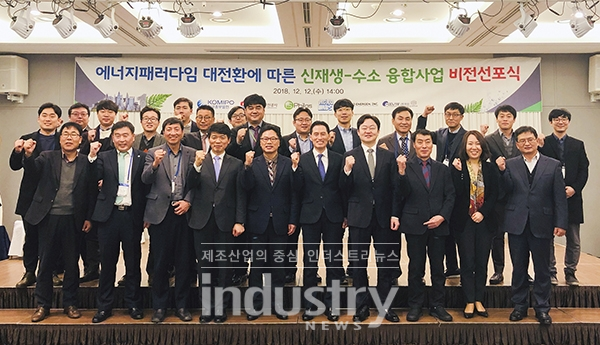 [인더스트리뉴스 최홍식 기자] 한국중부발전(사장 박형구)은 12월 12일 군산 베스트웨스턴호텔에서 한국가스안전공사, 한국에너지기술연구원, 지필로스, 수소에너젠, 두진 등이 참여한 가운데 ‘에너지 패러다임 대전환에 따른 신재생-수소 융합사업 비전'을 선포했다.