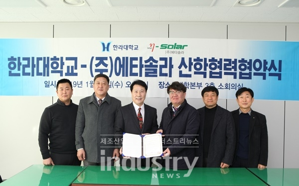 [인더스트리뉴스 이건오 기자] 신재생에너지 전문기업 에타솔라는 지난 1월 23일, 한라대학교 산학협력단과 연구 활동 및 기술정보를 상호협력 하에 제공하고, 국가 산업발전에 필요한 인재양성과 미래 지식기반사회 속에서의 기술·경영혁신을 도모하고자 산학협력협약을 체결했다고 밝혔다.