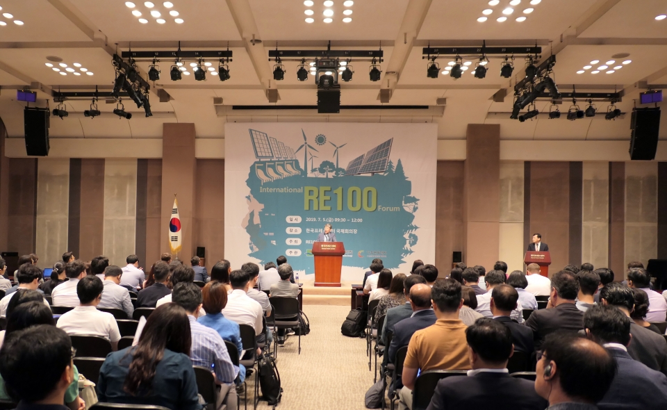 민관학 협의체 RE100 위원회는 기후변화 대응과 지속가능한 성장을 위해 RE100 이니셔티브에 참여하고자 하는 기업들에게 도움을 주고자 7월 5일 한국프레스센터 국제회의장에서 ‘International RE100 Forum’을 개최했다. 이번 포럼을 위해 RE100 이니셔티브를 주관하고 있는 더 클라이메이트그룹(The Climate Group)의 샘 키민스(Sam Kimmins) 대표와 RE100을 실천 중인 에이비인베브(AB InBev) 니콜라스 잉겔스(Nicolas Ingels) 동아시아 지사장이 참석했다.