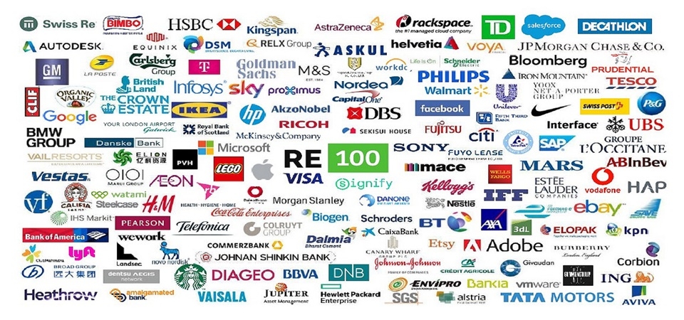 RE 100은 The Climate Group 주도로 2014년부터 시작된 전기소비주체가 소비전력의 100%를 재생에너지로 사용하겠다고 선언하는 자발적 글로벌 캠페인으로서, 2019년 현재 구글, 애플, BMW 등 185개 글로벌기업이 참여하고 있다.