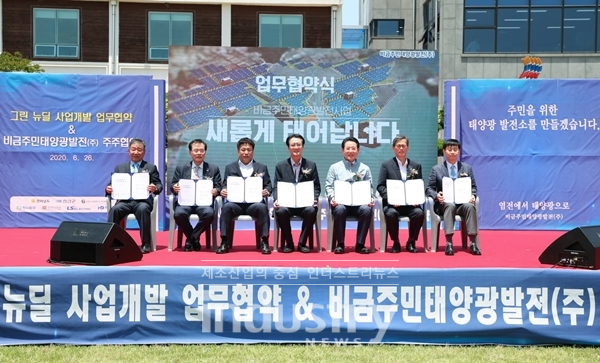 [인더스트리뉴스 이건오 기자] 한국수력원자력(사장 정재훈)이 지난 6월 26일, 신안군 비금도 이세돌 기념관에서 전라남도, 신안군, 호반산업, LS일렉트릭, 해동건설과 코로나19 위기 극복을 위한 주민주도형 ‘그린뉴딜’ 업무협약 및 비금주민태양광발전사업 주주협약을 체결했다고 밝혔다.