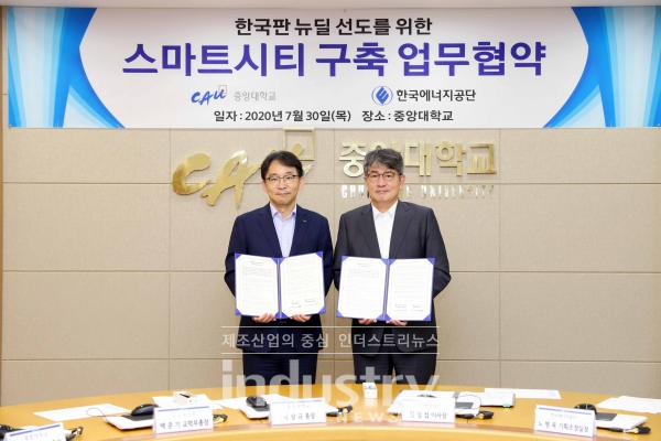 [인더스트리뉴스 정한교 기자] 한국에너지공단(이사장 김창섭)이 도시 에너지문제 해결과 지속가능한 생태계 구축을 위해 중앙대학교(총장 박상규)와 7월 30일 ‘스마트시티 구축 업무협약’을 중앙대학교 본관에서 체결했다.
